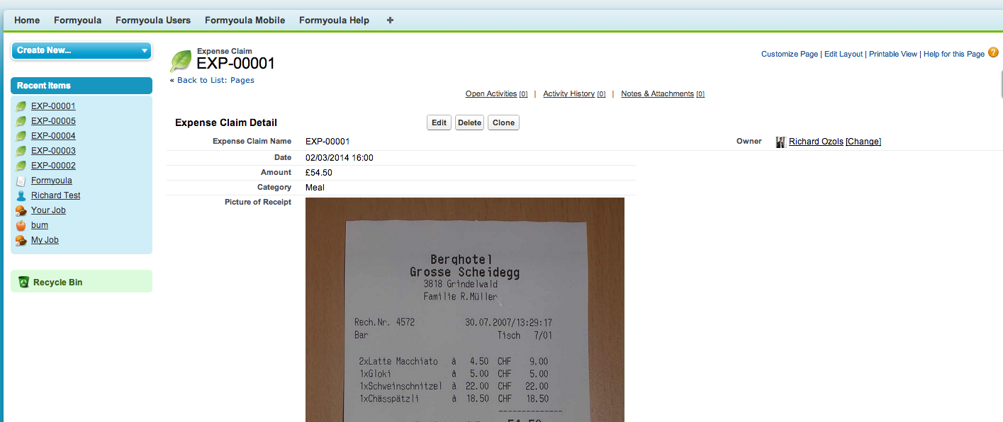We have created a new form called "Expense Claim" that we want to connect to a Salesforce custom object called "Expense Claim".